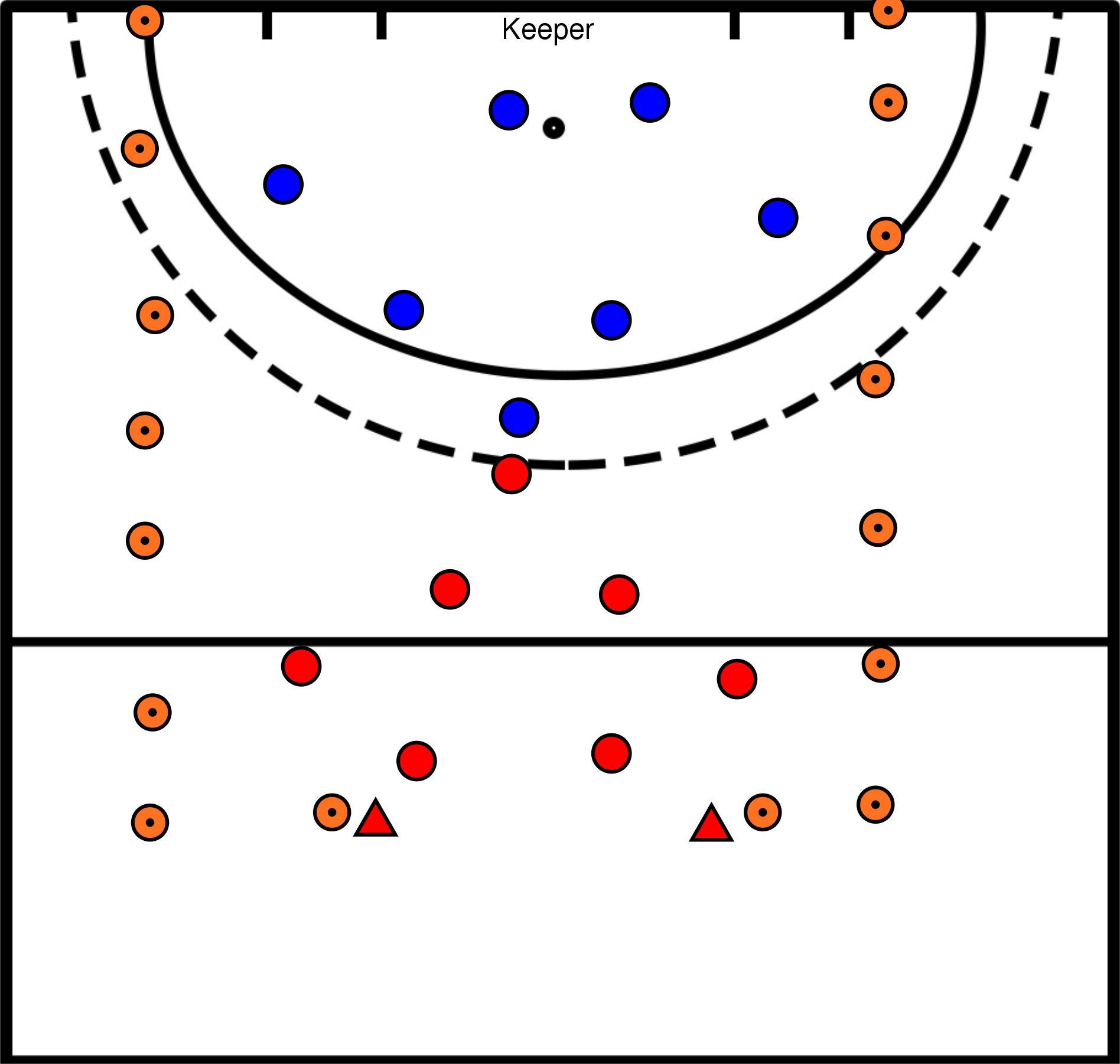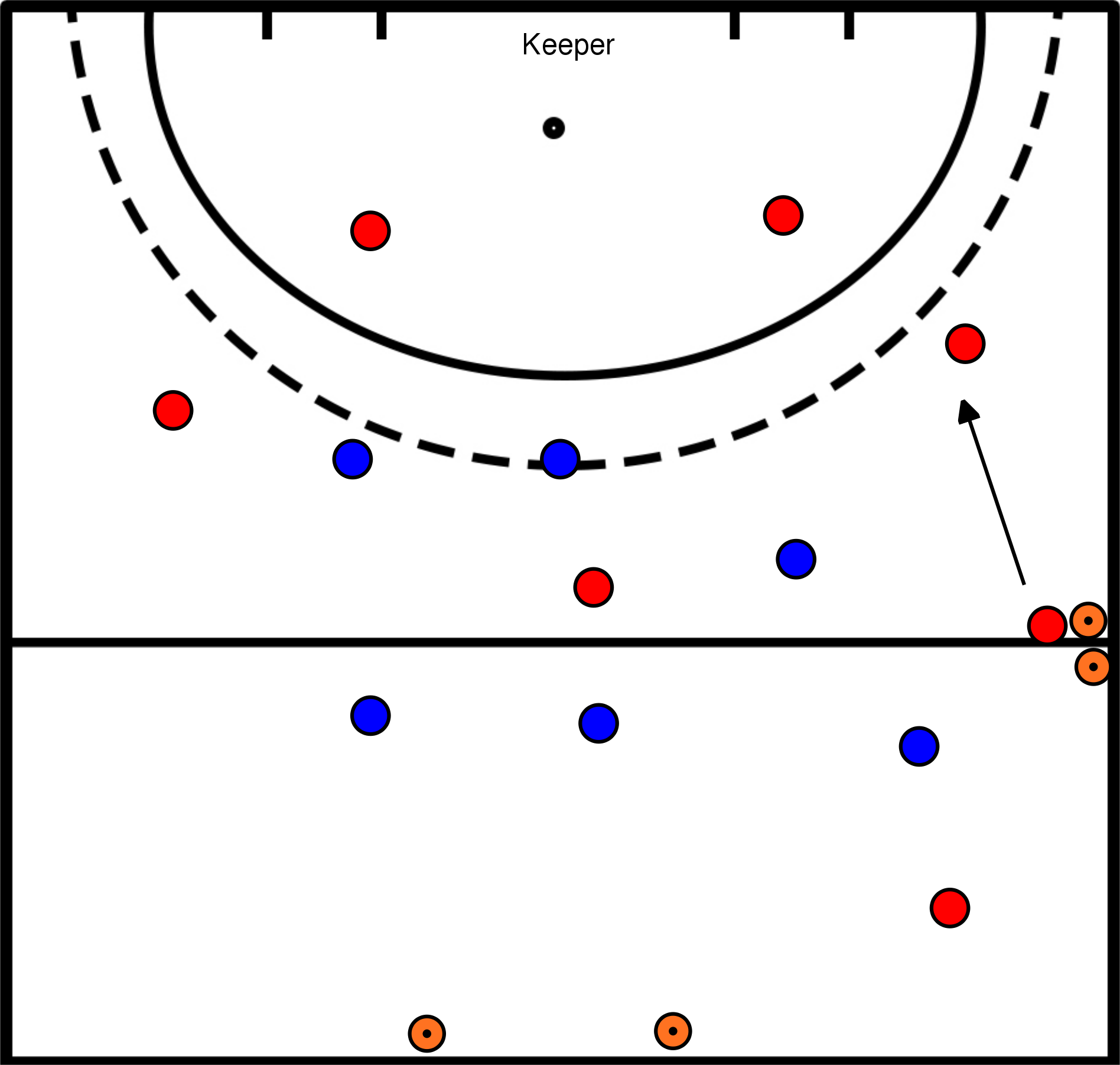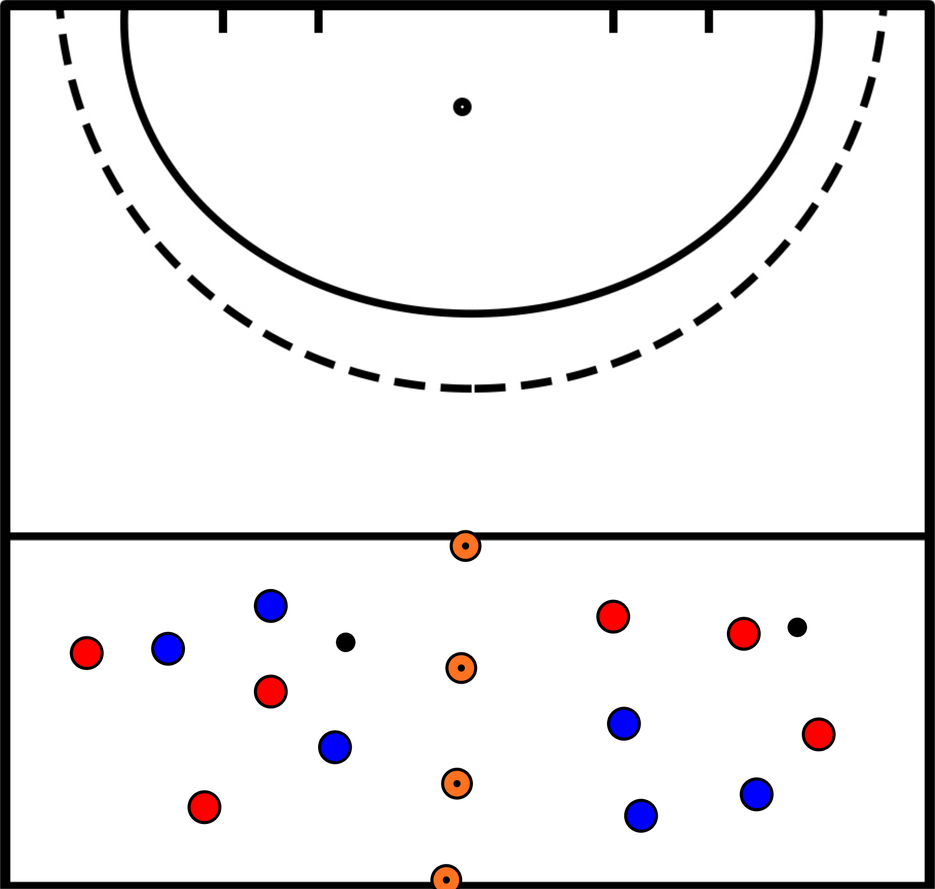 • Spieler kreisen um den Ball, seitwärts oder rückwärts-vorwärts.