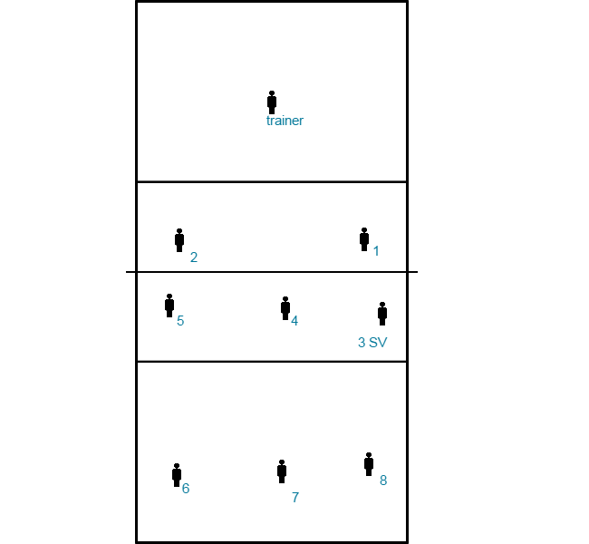 Zuerst mit Angriff und nach einigen Bällen Positionswechsel (vorne/hinten)