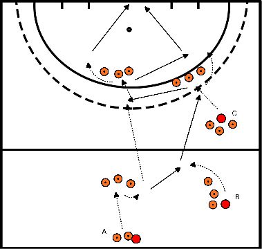- A beginnt mit dem Ball und schiebt ihn zu B