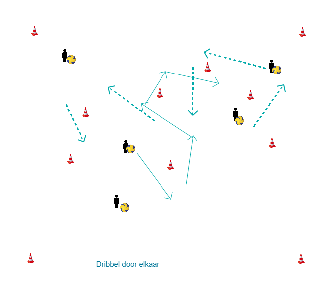 - Wenn du die äußerste Figur erreichst, drehst du dich um und dribbelst um sie herum.