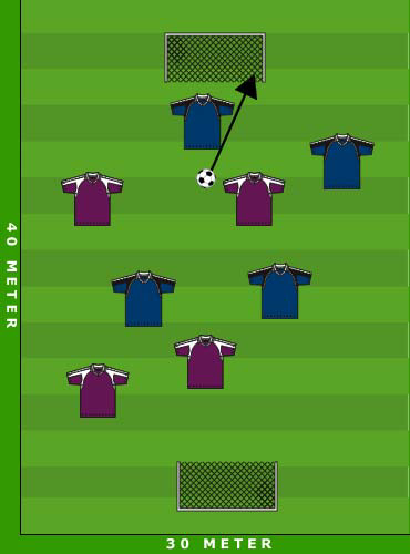 • Angreifer gegen Verteidiger in 30x20 bis 40x30 Feldern.
