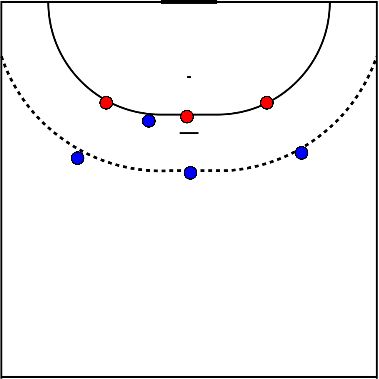 - Tor: die 3 Spieler versuchen einen Pass auf den Kreisspieler zu spielen und der Verteidiger versucht diesen zu verhindern