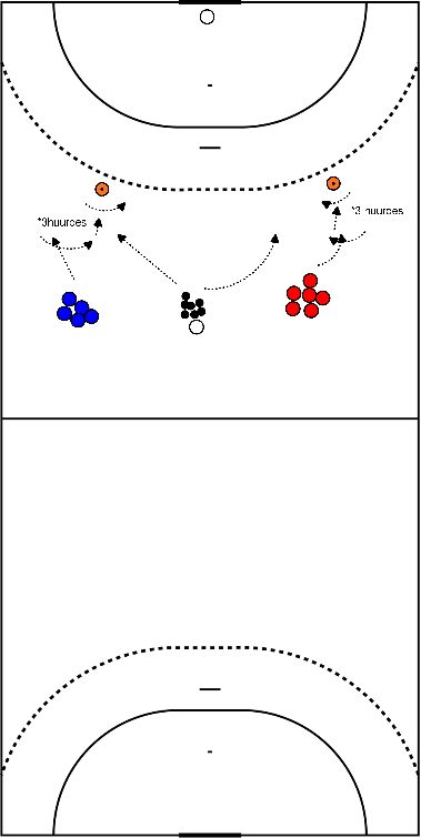 - Bilden Sie 2 Reihen auf der 6-Meter-Linie bei LO und RO (1 Reihe braucht Bälle).
