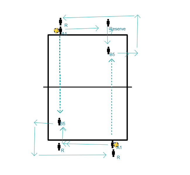 - Lassen Sie eine Person des Paares am Netz beginnen, während die anderen in der hinteren Reihe Platz nehmen.