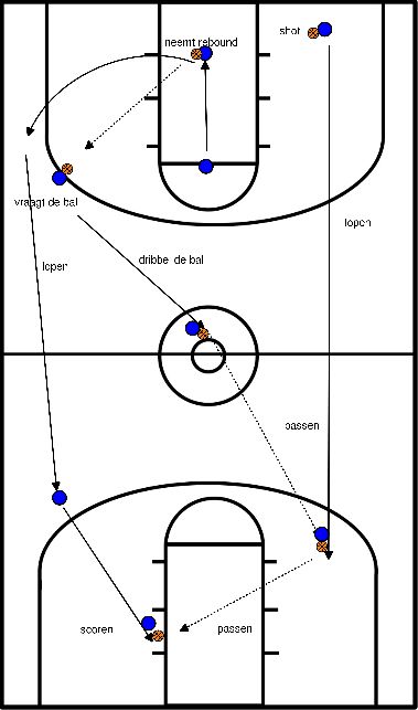 - After the lay-up, they take their own rebound and make an outlet pass to the waiting player on the sideline.