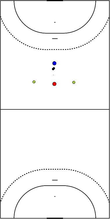 • The pivot player indicates where he or she wants to receive the ball by raising his or her hand.