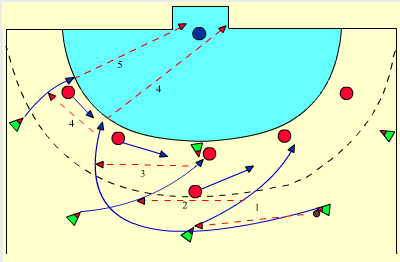 - Pass to Backcourt Player 1 and then back to Backcourt Player 2.