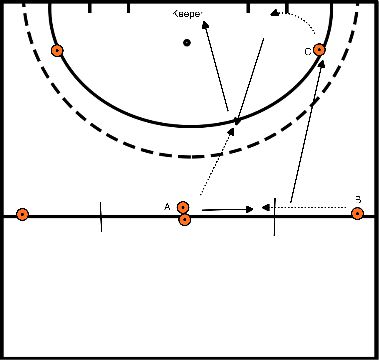 • B runs through and gets the ball back from C. This may be a rebound as long as it is hard and clean.
