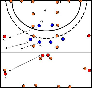 • V3 passes the ball back to V2, who runs into the circle and completes