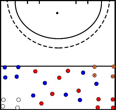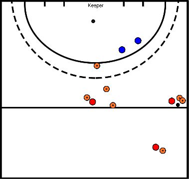 - Blue accelerates to the top of the circle and finishes on goal.