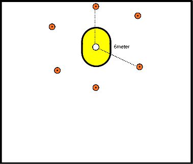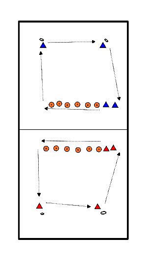 - When the ball is on the cone, a player must run behind it and return the ball to the other player.