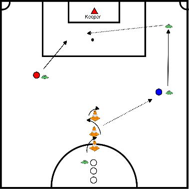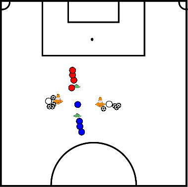 • Players move sideways or backwards-forwards around the ball.