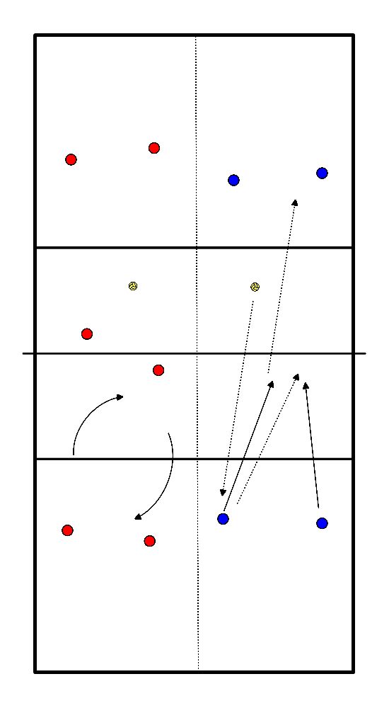 - Servers serve the ball, the defenders have to pass it to the TR (position 2/3)