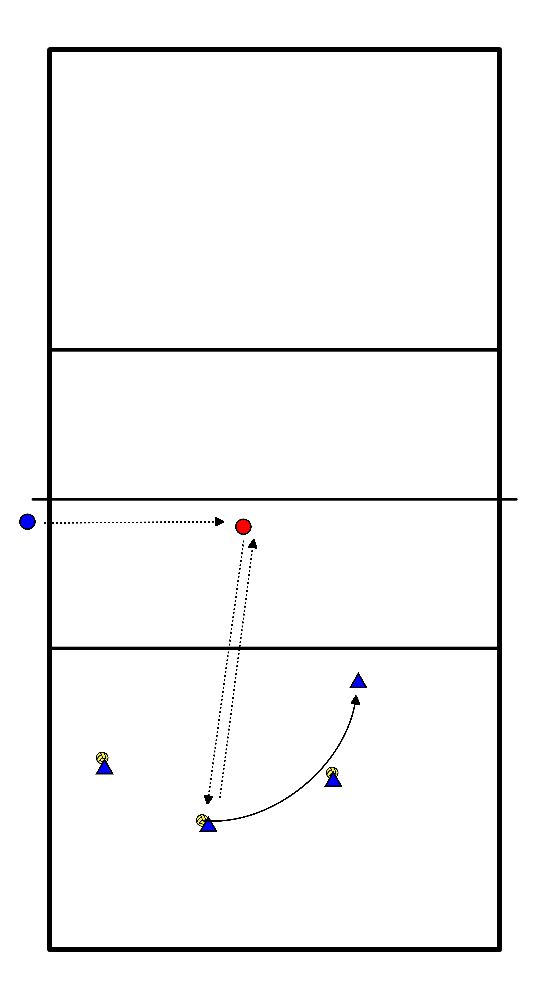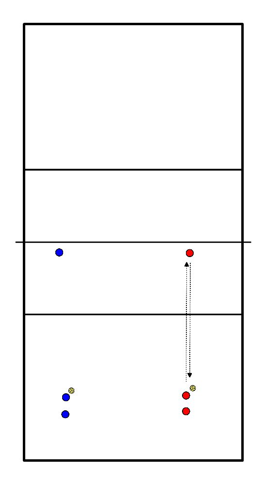- Optional: Depending on the level, the second ball may be attacked from a standing position from the backcourt.