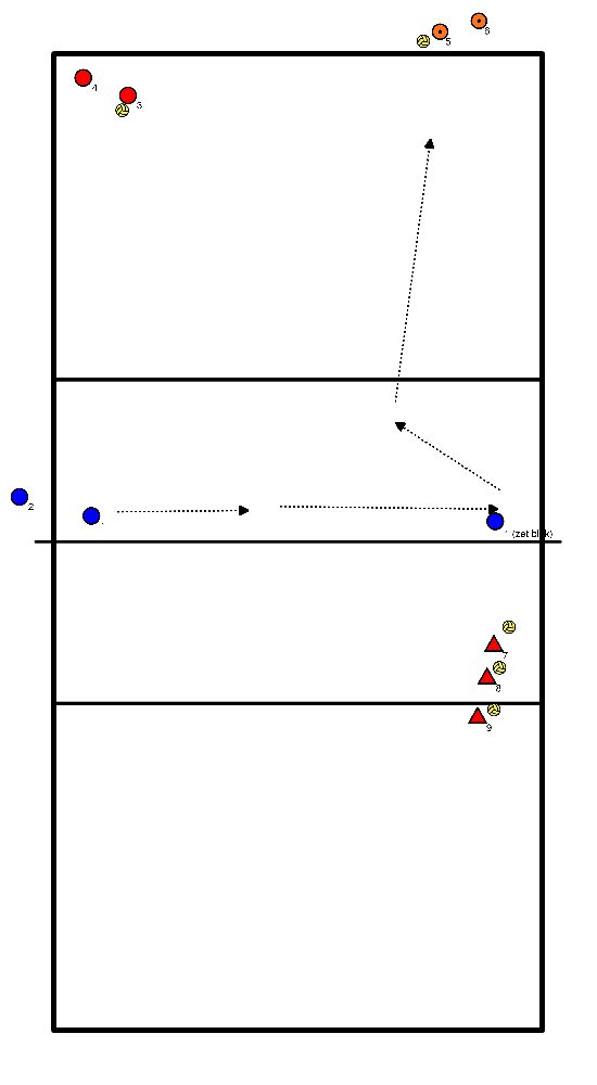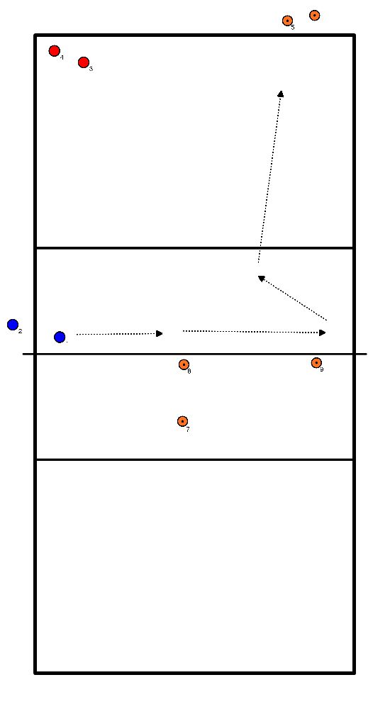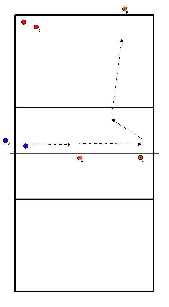 - This defender first throws their ball to another defender without a ball and then passes to the setter.