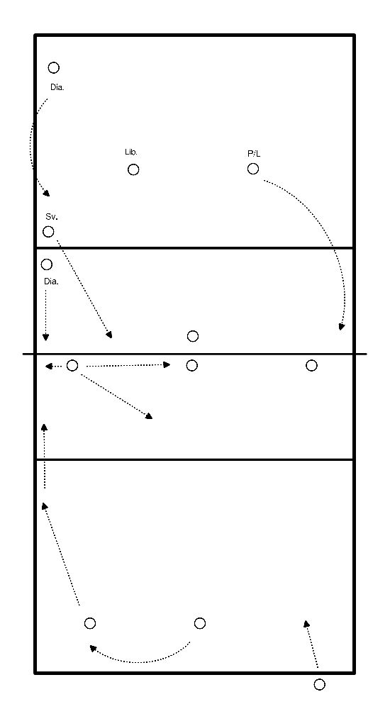 - After each net crossing, the team rotates one position.
