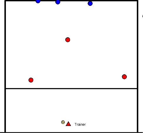 - Players move to their positions and defend the ball from the trainer.