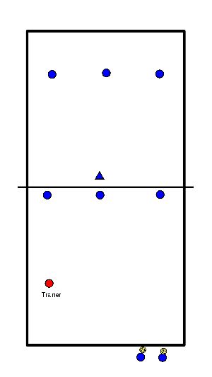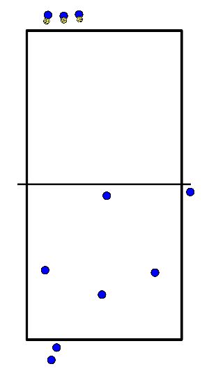 - Divide the team into two groups. Each group takes position on one side of the net.