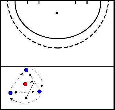Es colocaràn tres persones en forma de triangle i una al centre del triangle, els tres de les puntes hauràn de passar-le la pilota ràpidament i el del centre haurà d'intentar tallar les passades
