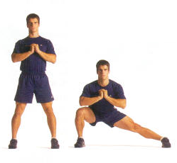 - Húndete con la parte superior del cuerpo erguida y el peso sobre el pie derecho. Baje lo más posible, manteniendo la pierna izquierda extendida y los pies apoyados en el suelo.