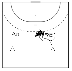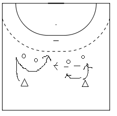- El alumno menos hábil puede hacer un rebote tras el amago de tiro y luego hacer un pase 1-2-3 y rematar a puerta.