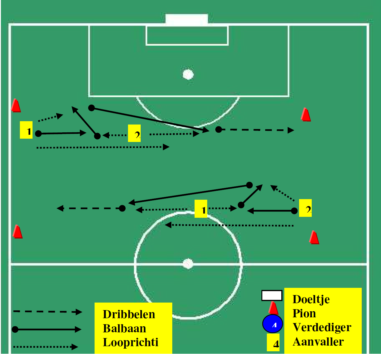 - Dos frente a frente, ambos con balón. Regatear al otro, cortar hacia adelante y hacia atrás (variar el pie que se va a golpear).