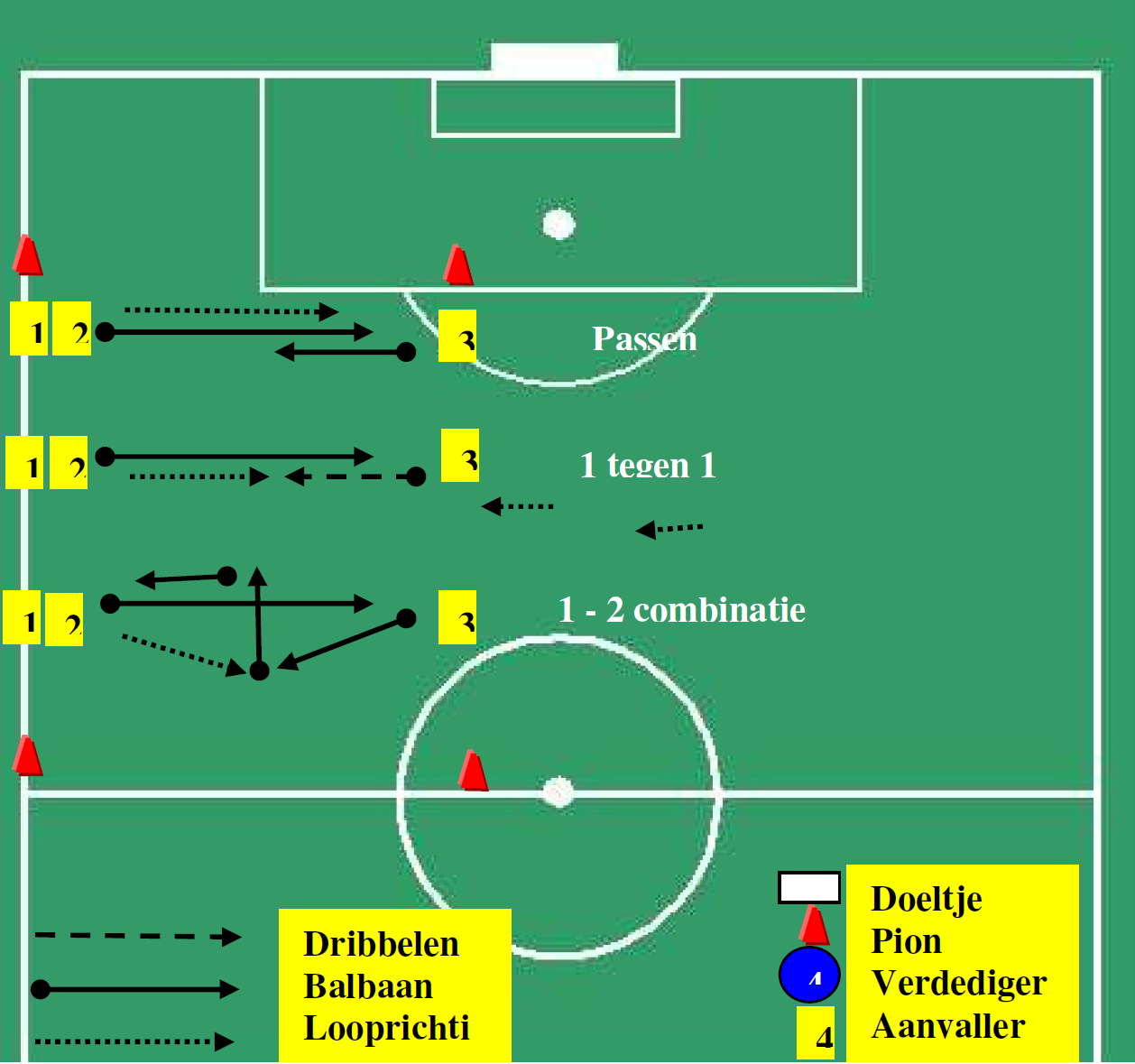 - Tarea 1: Atravesar el balón por el área central sin chocar.