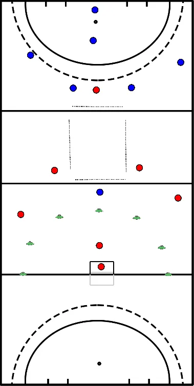- Los demás defensores permanecen en el círculo.