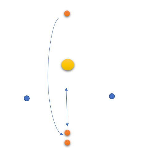 - La persona 2 escoge si corre hacia el peón 3 o hacia el peón 4.
