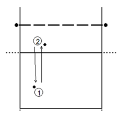 - El otro jugador corre rápidamente por debajo de la red y coloca el balón para el mismo jugador que pasó.