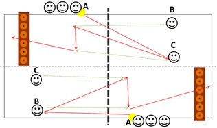 - La persona que se encuentra en el aro trata de atrapar el servicio sin salirse del mismo.