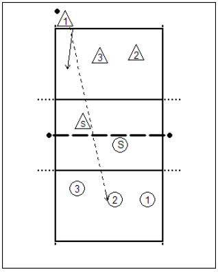 - Los jugadores en la red lanzan la pelota al mismo tiempo, los jugadores en la parte de atrás la pasan al mismo tiempo.