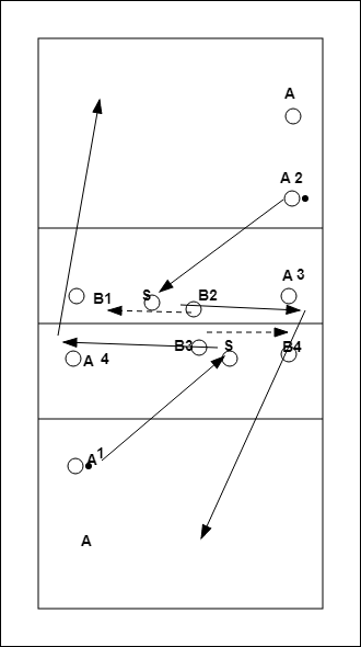 : El bando a recibe todos los balones en contra e intenta marcar desde esta situación.