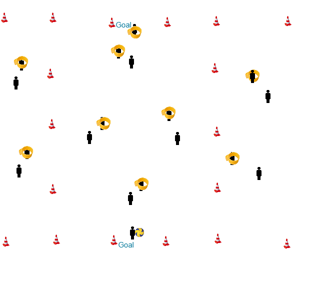 Largeur : Lorsque le ballon est dans la case de gauche, les joueurs doivent également se déplacer de ce côté à l'aide des cases. Au moment où le ballon se trouve dans la boîte de gauche, aucun joueur ne peut se tenir dans la boîte de droite.