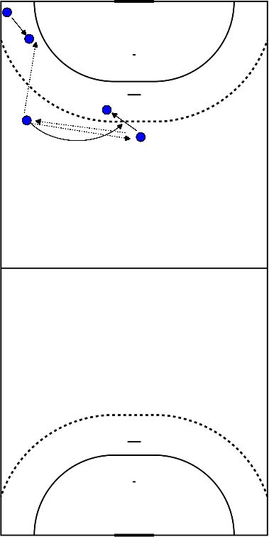 - L'ailier démarre vers le pivot entre les positions 3 et 2.