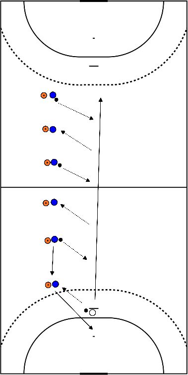 - Celui qui reçoit le ballon fait une passe en o, une passe latérale et une passe avant, puis passe le ballon au joueur situé derrière la ligne de touche.