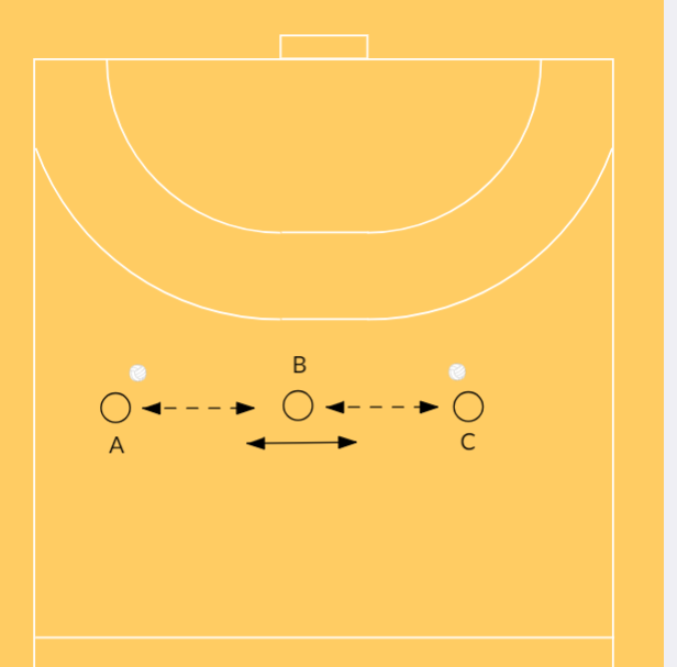 - Le joueur C entre en jeu et reçoit le ballon du joueur B, etc. etc.