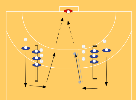 - Le partenaire lui transmet le ballon, le gardien lui renvoie le ballon.