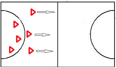 - Les défenseurs défendent vers l'avant et font attention à leur posture (correcte) (jambe droite devant - jambes fléchies - saisir l'adversaire par les bras supérieurs - se tenir le plus près possible de l'adversaire). Obstruer la direction du tir/de la course - forcer l'attaquant à sortir - communiquer - aider les coéquipiers les plus proches.