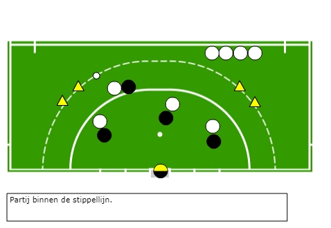 - L'un des membres du groupe doit recevoir le ballon dans le cercle de la zone de marquage et essayer de marquer.