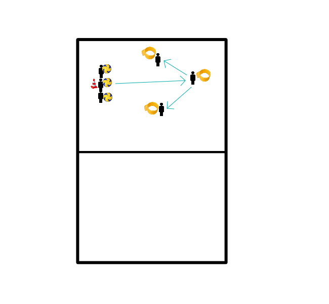 - 2 joueurs se déplacent entre les 6 poteaux en formant un rectangle.