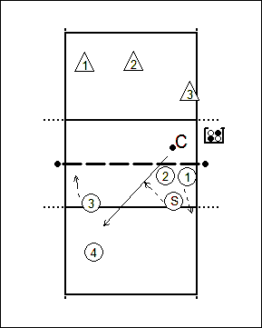 - Troisième balle : passe de la ligne arrière à la réception à 5 mètres.