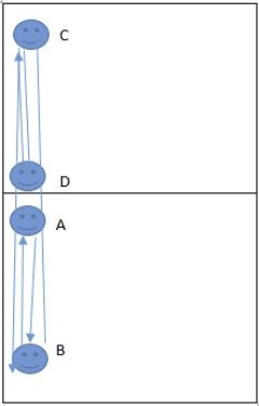 - Le joueur joue en sous-main vers le joueur situé sur le côté frontal droit.