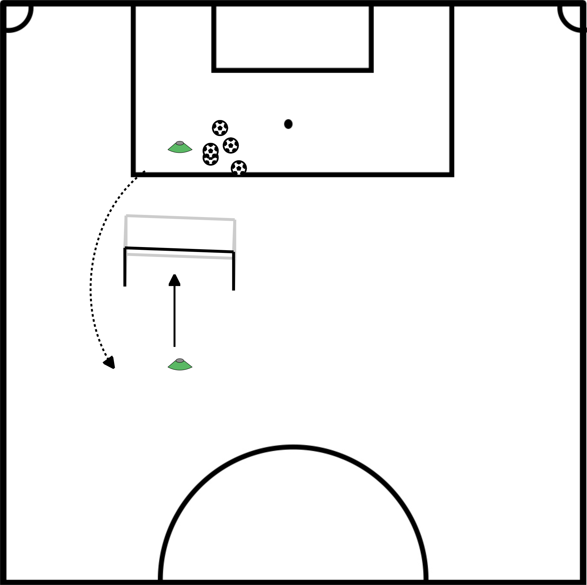 • Giocatore 1 effettua un passaggio lungo sopra la porta.