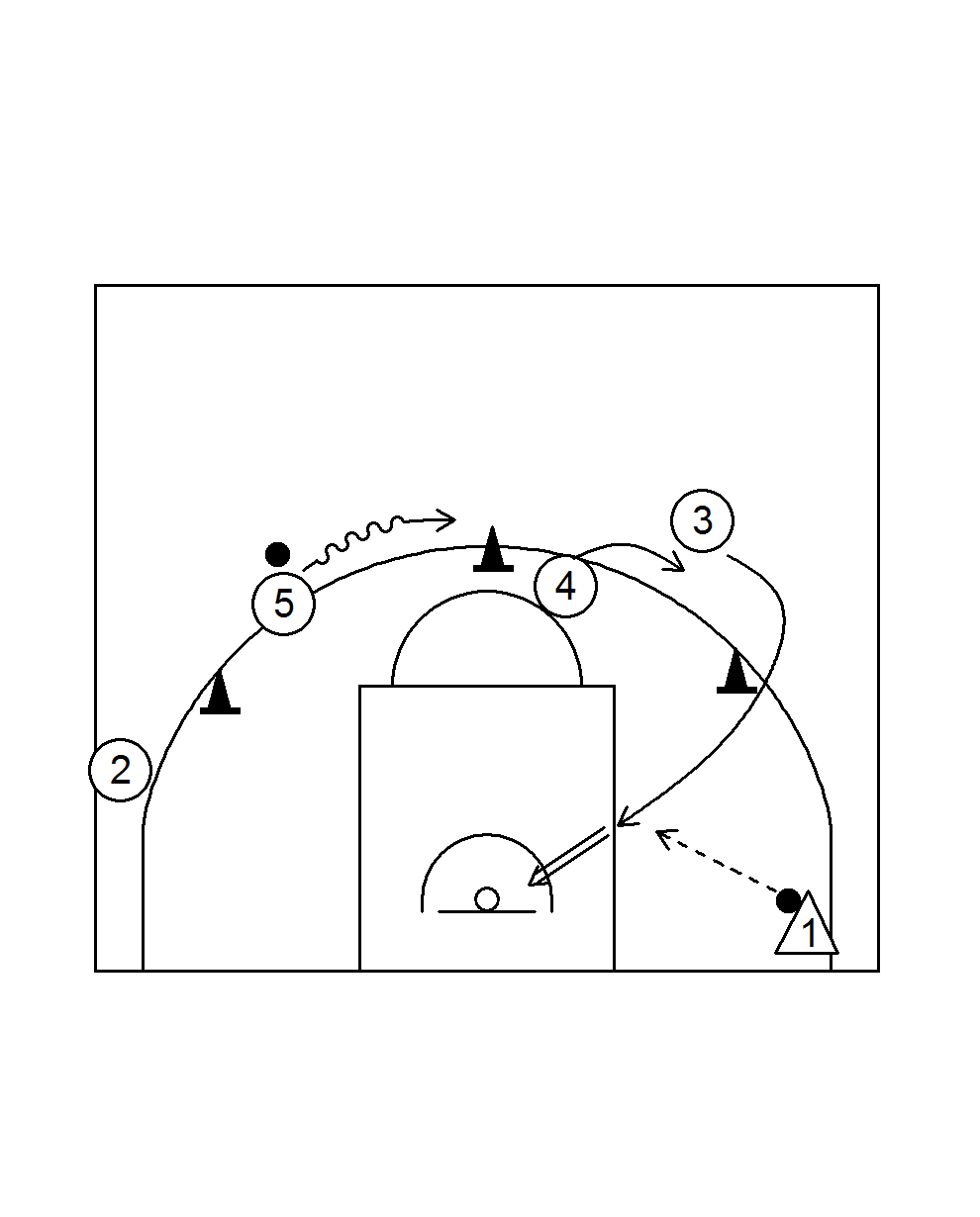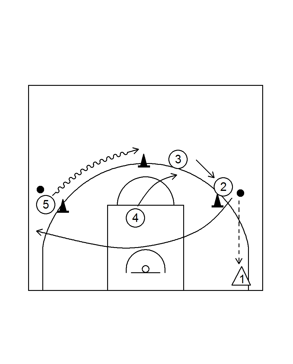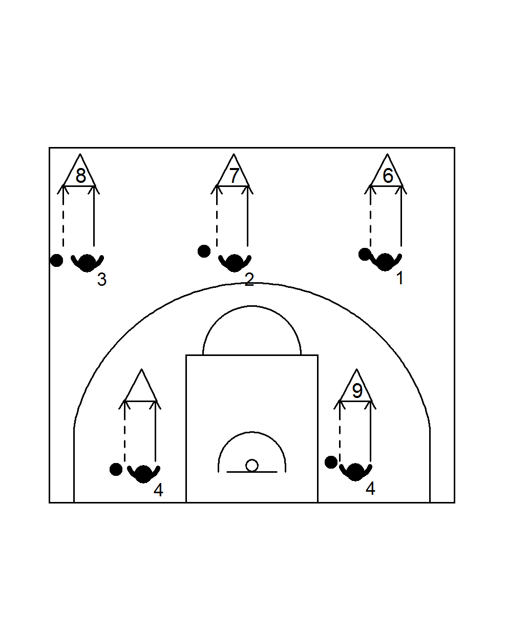 - Iniziare dalla propria posizione, andare a canestro dalla parte opposta.