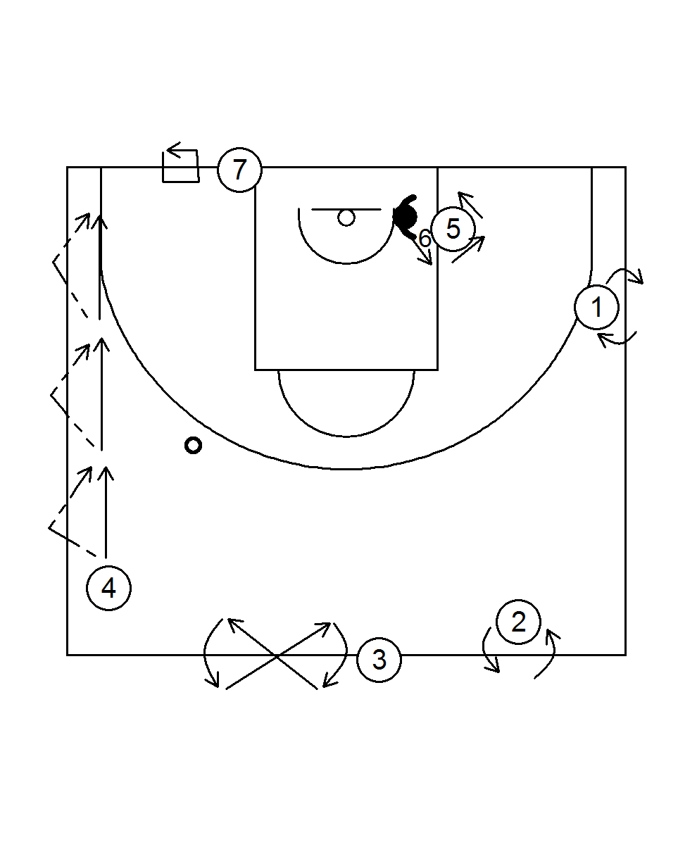 - in questo esercizio si può variare il tipo di tiro (3 punti, tiro dalla media distanza, lay-up, ecc.)