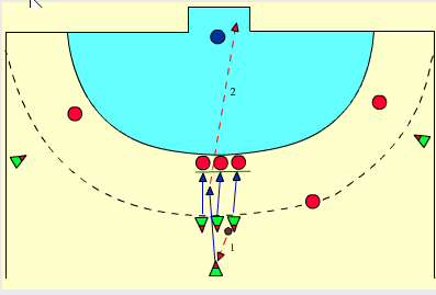 - Il difensore 1 cerca di impedire a tutti i giocatori di passare utilizzando la difesa di contatto.