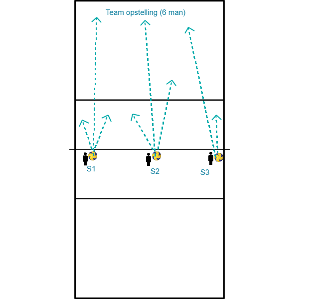 - Il giocatore dà l'impostazione all'attaccante sulla linea dei 3 metri.
