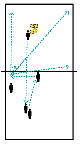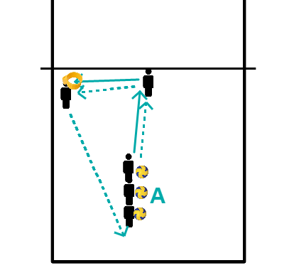 - I giocatori rimanenti si posizionano intorno al campo per raccogliere i palloni giocati e ripassarli all'allenatore.