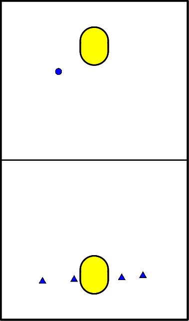 • Spelers cirkelen rond de bal, zijwaarts of achterwaarts-voorwaarts.